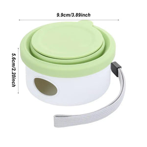 TREAT STORAGE: Say goodbye to bulky treat bags! Our travel bowl features a built-in compartment to store your dog's favorite treats, keeping them fresh and easily accessible during outings and adventures.